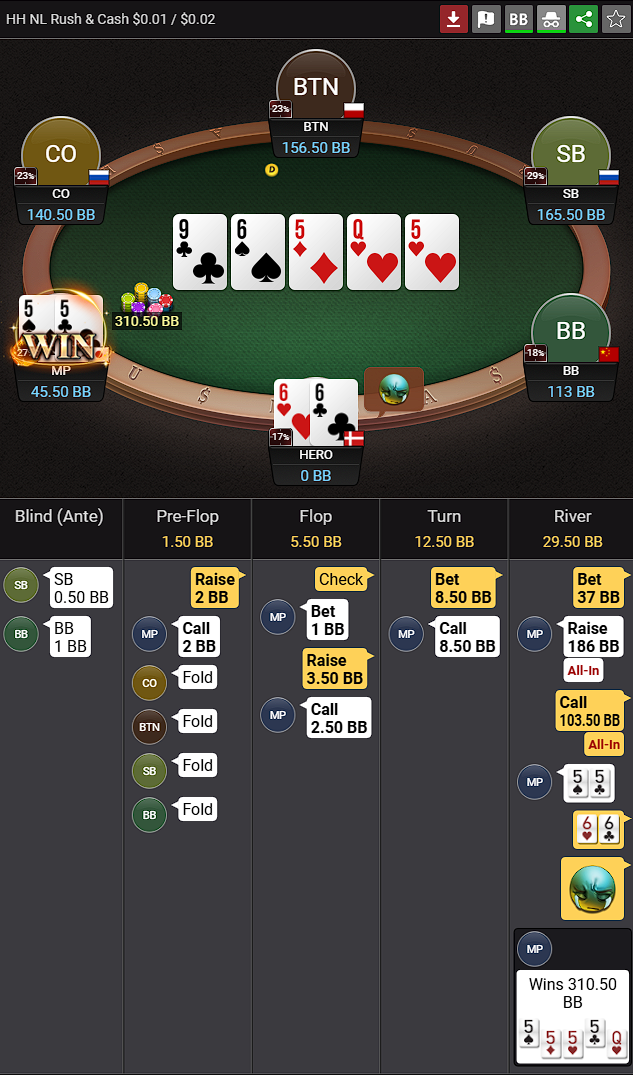 Opnå en winrate på +3BB/100 over minimum 25.000 Rush & Cash-hænder på NL2, NL5, NL10 og NL25.