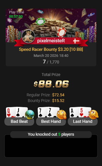 - Freerolls er tilladt, men tæller ikke med i BB/100
