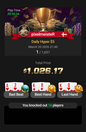 - Winrate måles uden rakeback og andre promotioner
