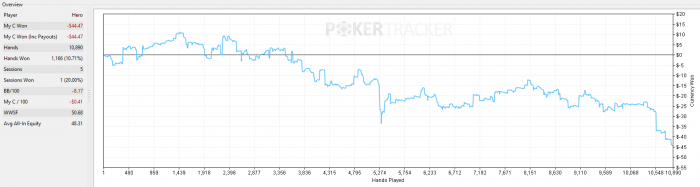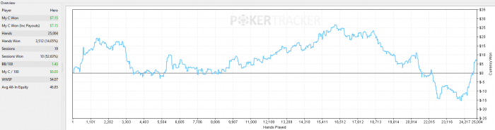 Jeg er klar over at 25K hænder ikke nødvendigvis er en stor nok sample til at vurdere om man réelt slår spillet, men det er tallet jeg har besluttet mig for.