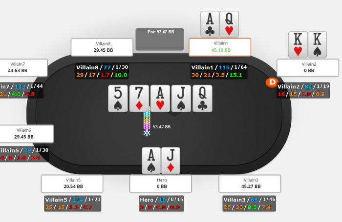 Villain 2 har jeg heller ingen noter på trods 84 hænder. (det er trods alt heller ikke så mange) flatter de 2 bb