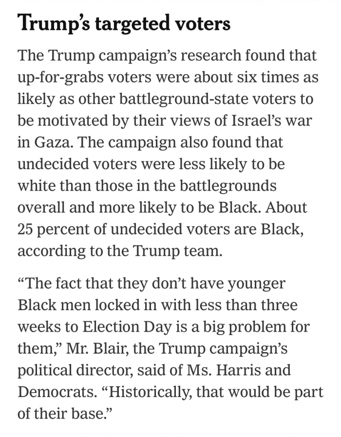 Jeg tror det kommer til at have en effekt. Jeg kender ærligt talt ikke så godt musikscenen i USA, men jeg kan se at Bad Bunny, J Lo, og en eller anden rapper med Puerto Ricanske rødder der tidligere endorsede Trump, men nu ikke gør mere -- hvor stor en effekt endorsements reelt har ved jeg ikke, men de hjælper med at sætte den brøler på dagsordenen og det har en stor værdi i sig selv med den mængde Puerto Ricanere der er i svingstaterne (inklusiv 500,000 i Pennsylvania).