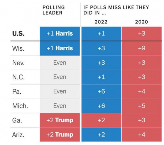 Jeg er spændt på, hvordan Texas ender. Republikanerne har vundet den med 16 % i 2012, 9 % i 2016 og 5 % i 2020.