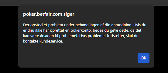 Når jeg forsøger at tilgå min pokerkonto derinde får jeg følgende besked. I går såvel som i dag.