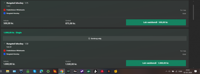 Brøndby IF - Sønderjyske Tabt (-3 units) Sønderjyske sejr @ odds 4.4 3 / 5 Andre Fodbold - Danmark - Superligaen - 23/02-2026 19:00 Imo helt skævt sat odds. Spillet på betano Cooper har endnu engang rystet posen hvilket nok egentlig var forventet så dårlige som de så ud senest, men jeg forventer mig ikke meget mere af dem i dag. Jeg er ligeledes på -1 til 9,9 Redigeret af Nitrrrrrram d. 23-02-2026 18:27