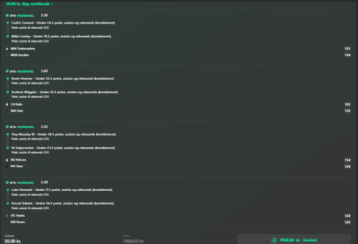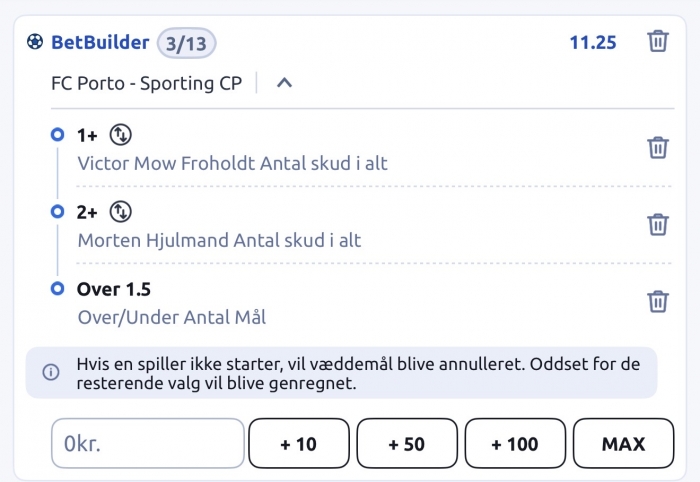 Spillet under spillerstats, hvor oddset er højest, men desværre også med limits i den lave ende her. Redigeret af Hawkeye d. 31-01-2026 09:26