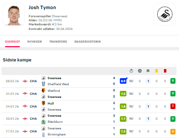 Southampton - Hull Vundet (+9.75 units) Taylor Harwood Bellis over 0,5 skud på mål @ odds 4.25 3 / 5 Danske Spil Fodbold - England - Championship - 17/01-2026 16:00 Stats for sidste 5 Championship-kampe