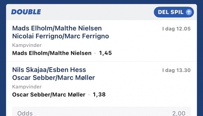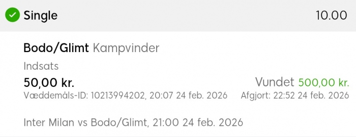 UKgrinder skrev: Tak for tip, nåede det ikke helt til dine priser men fik lavet en fin skilling. Ser ud til du har godt styr på ligaen, ikke første gang jeg har lavet guld på dine staldtips.