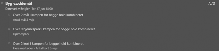 DK over 5.5 mål i hele turnering @ 2.10 Bet365 DK når kvartfinale eller bedre @ 2.37 Bet365 DK når semifinale eller bedre @ 5 NordicBet Lukako topscorer @ 8.00 Unibet