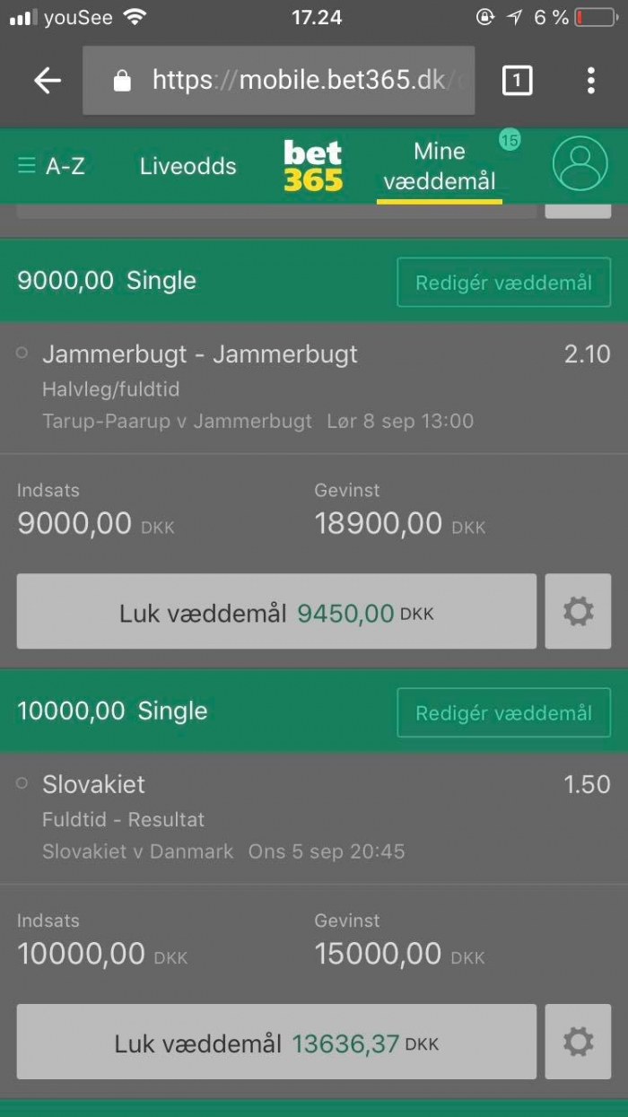 spillede lige liquid til odds 7,5 - 1 minut senere laver de Oddset om til 1,06 Mit bet bliver sikkert annulleret :( Redigeret af Snack1606 d. 10-09-2018 01:00