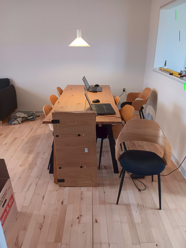 bord(90*200 cm)+7 stole + 2*tillægsplader = 1500