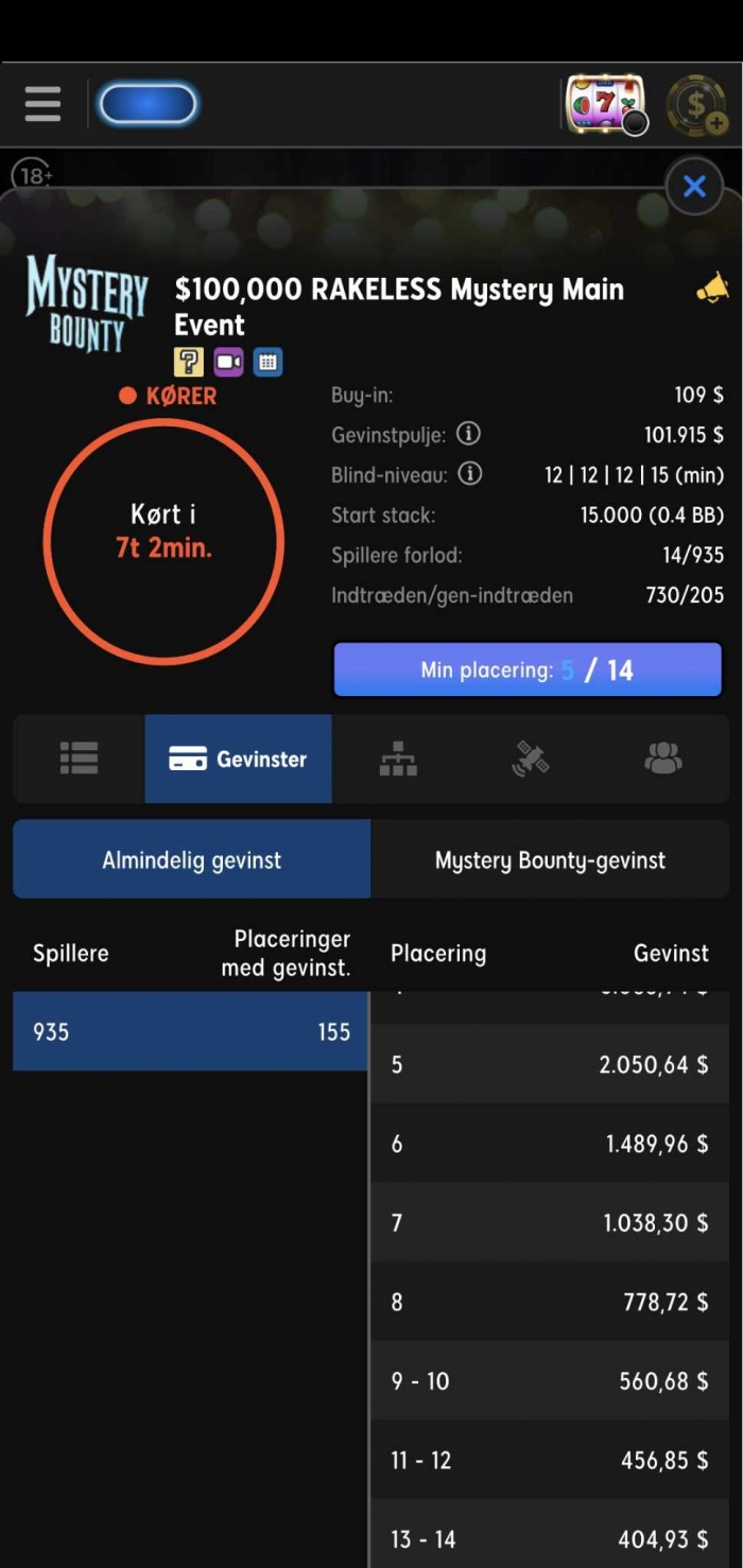 Dermed er der 100$ til mystery bounty, dvs snit på cirka 11$.