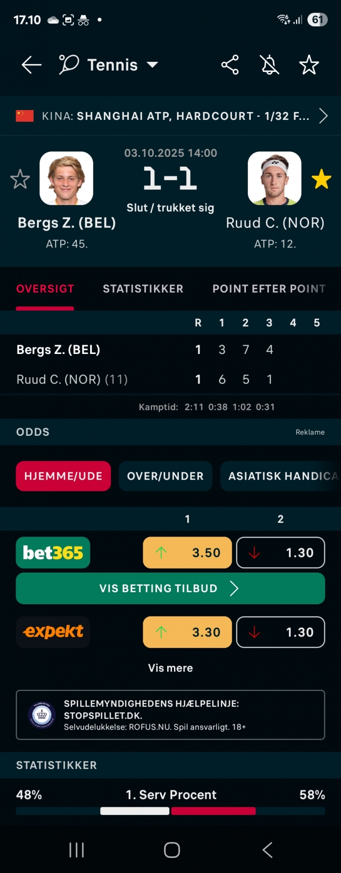 Ah, det snød mig at der stod "4" og "5" i oversigten i det første screenshot, og at det er standard med 5 sæt hos herrerne. Men i så fald er jeg enig i, at de bør udbetale på bettet... Redigeret af krabo d. 03-10-2025 19:10