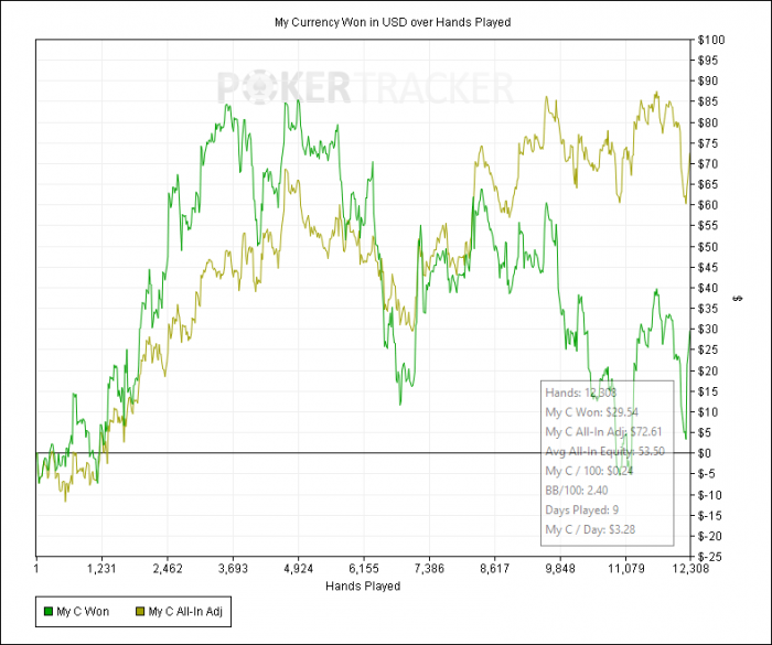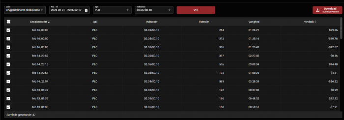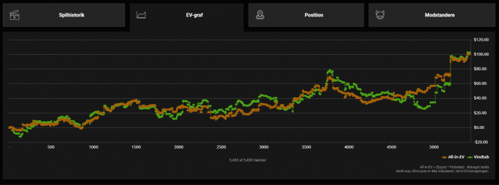 Antallet af hænder passer, men hvor meget jeg har vundet og tabt er meget forskelligt.