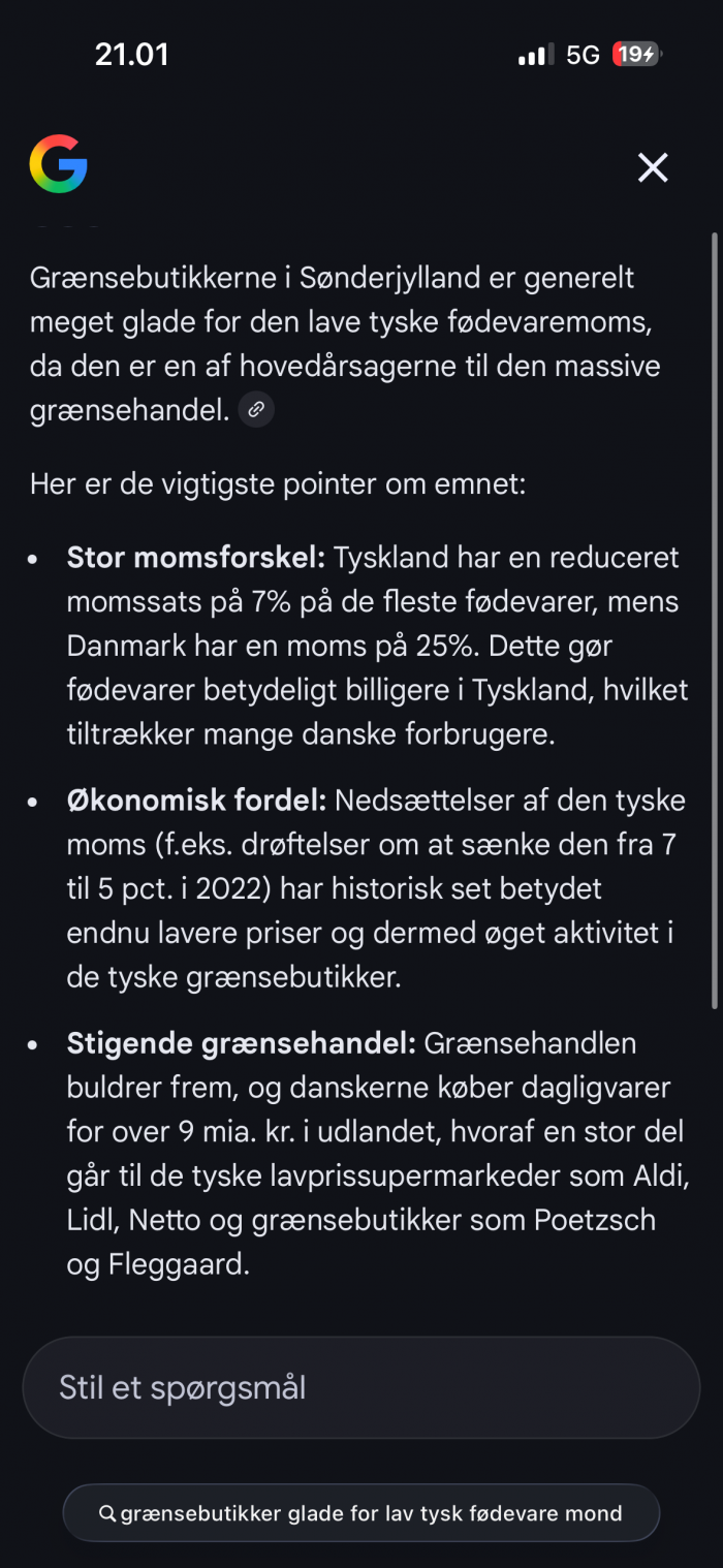 Angående differentieret moms på fødevarer, så er det sgu lidt specielt at det her er de blå partier som er imod en afgifts sænkning for en gangs skyld. Og fagbevægelsen som synes det er en god ide, uden at tænke på hvad de manglende moms kroner skulle bruges til. Her er er jeg så kedelig at håber de holder fast i KISS princippet når Udvalget har arbejdet færdigt. Keep it simple. Det er sgu for populistisk at gå imod alle eksperter og komplicere reglerne for nogle få procents skyld.