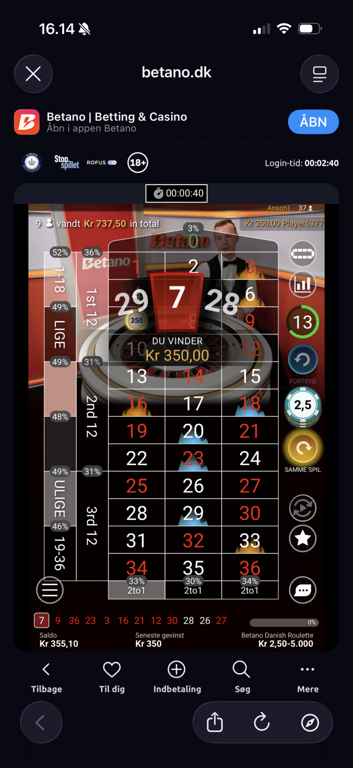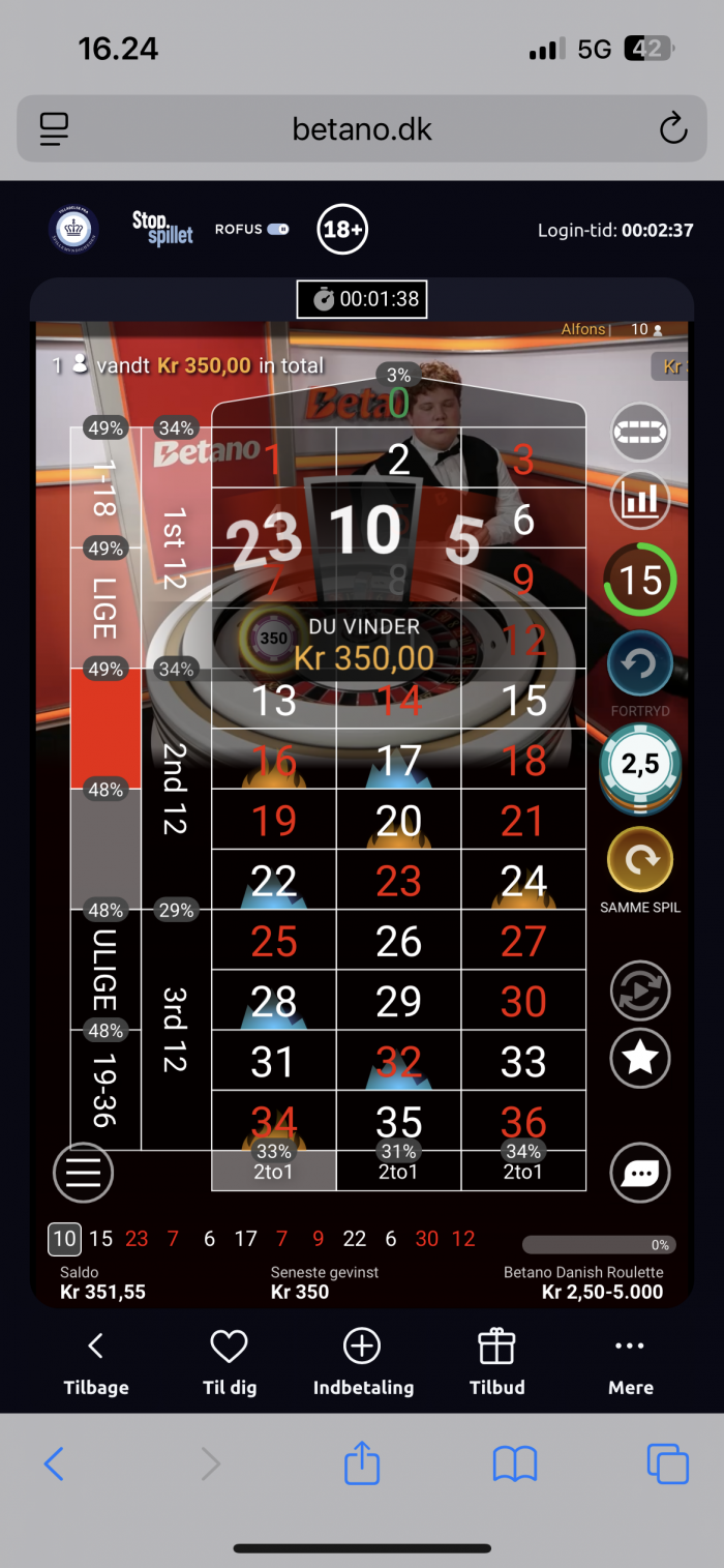 Jeg har en progressiv strategi. Starter med 70 og sidebets 10 10