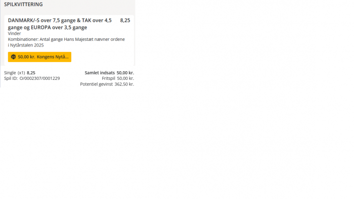 Der ligger 50kr på Danske Spil til at fyre af på nytårstalen