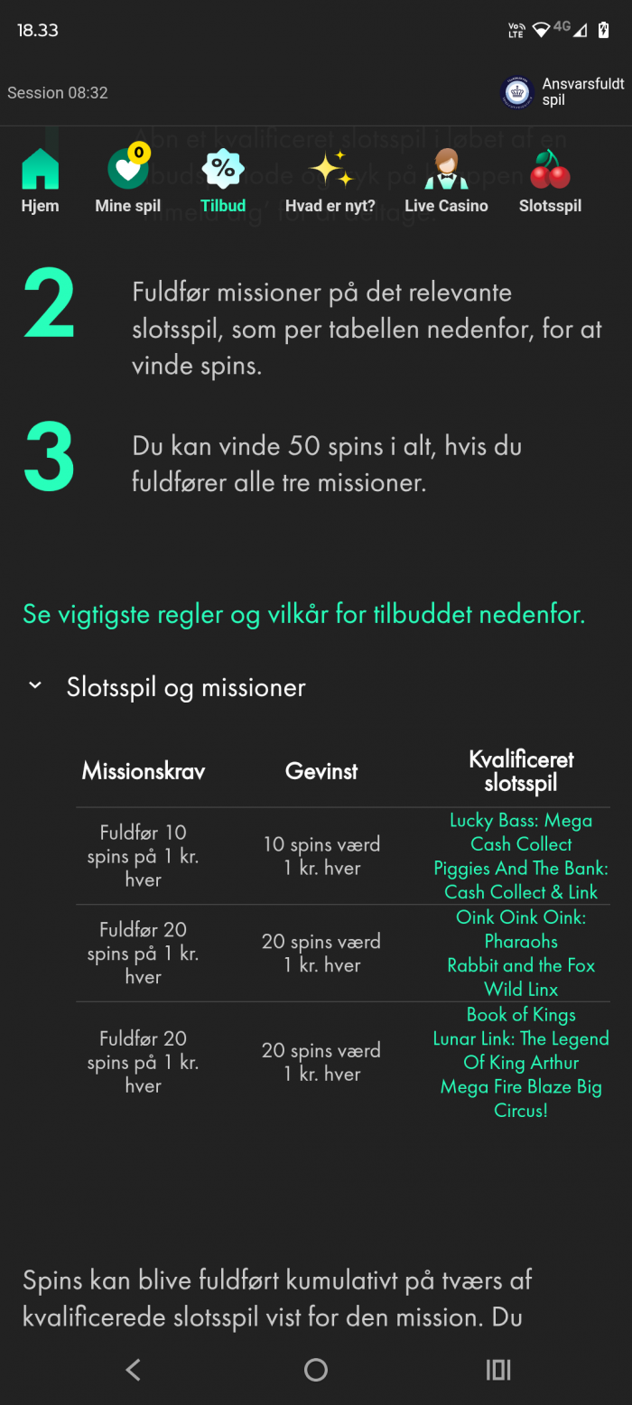 Jeg har tabt lidt den sidste måned, så er blevet rykket op i deres “VIP” program, så alle mine missioner er 500kr :p