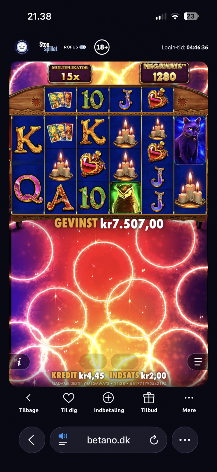 Fik den på DS. Ramte et sygt spin i free spins på 10.000 gold og nettede +650 kr. og var fornuftig at stoppe inden de var væk igen :-)