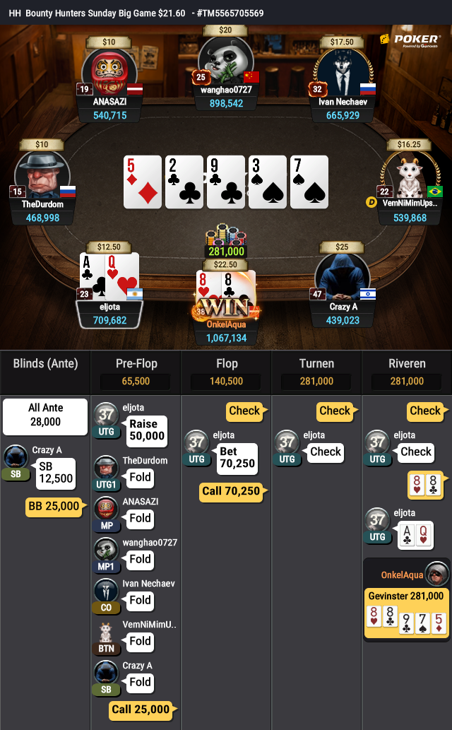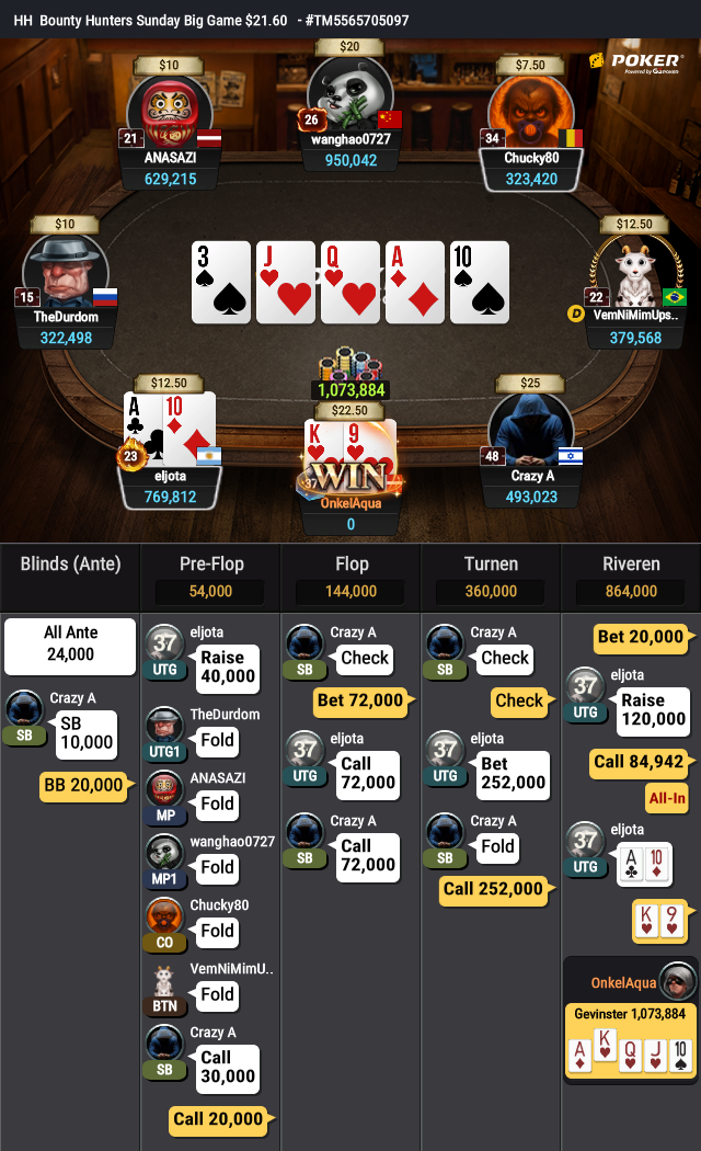 Hyggede lige med denne hånd i 21,60 usd tour (underligt beløb)