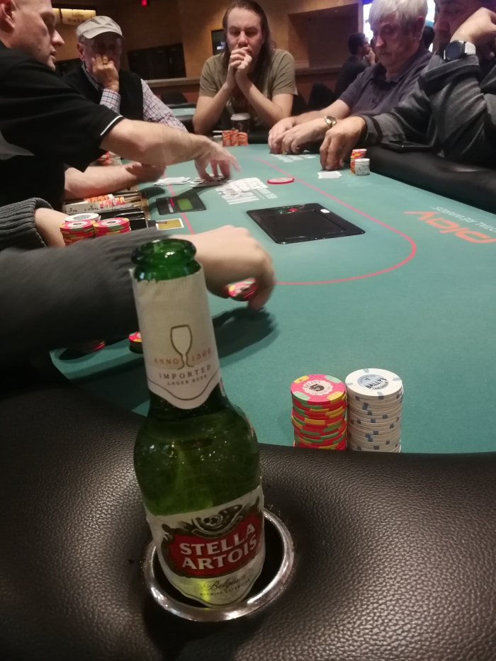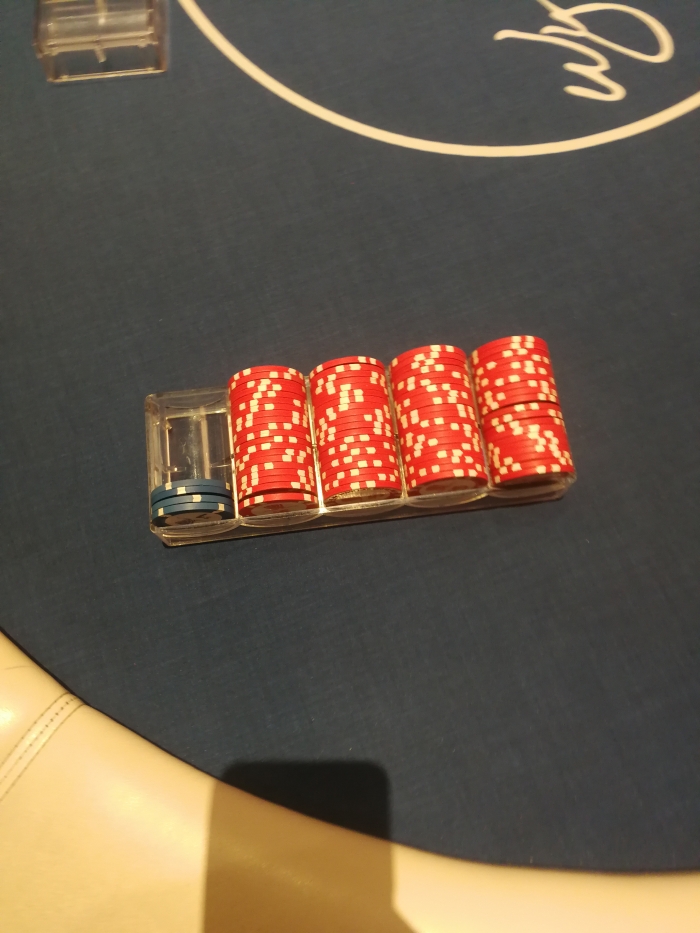 Efter et par dybe indåndinger er jeg tilbage på bordet. Jeg falde i snak med P1, han er sgu meget hyggelig, selv om han flopede set mod mig. Der går ikke længe inden P1 og P2 smutter med mine penge.