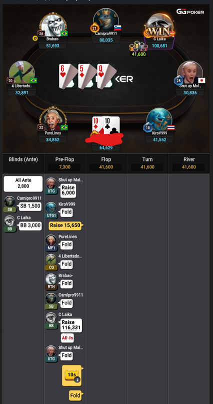 Grundet bubble vil jeg kalde og evt folde afhængig af UTGs tendenser - også relevant hvordan de resterende shortstacks spiller.