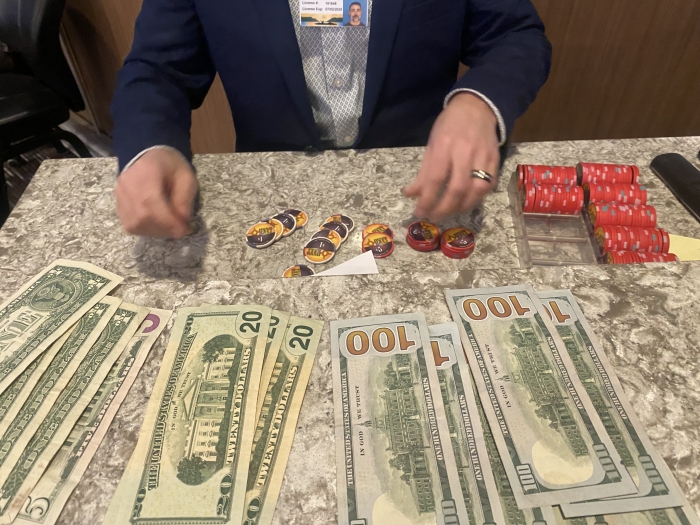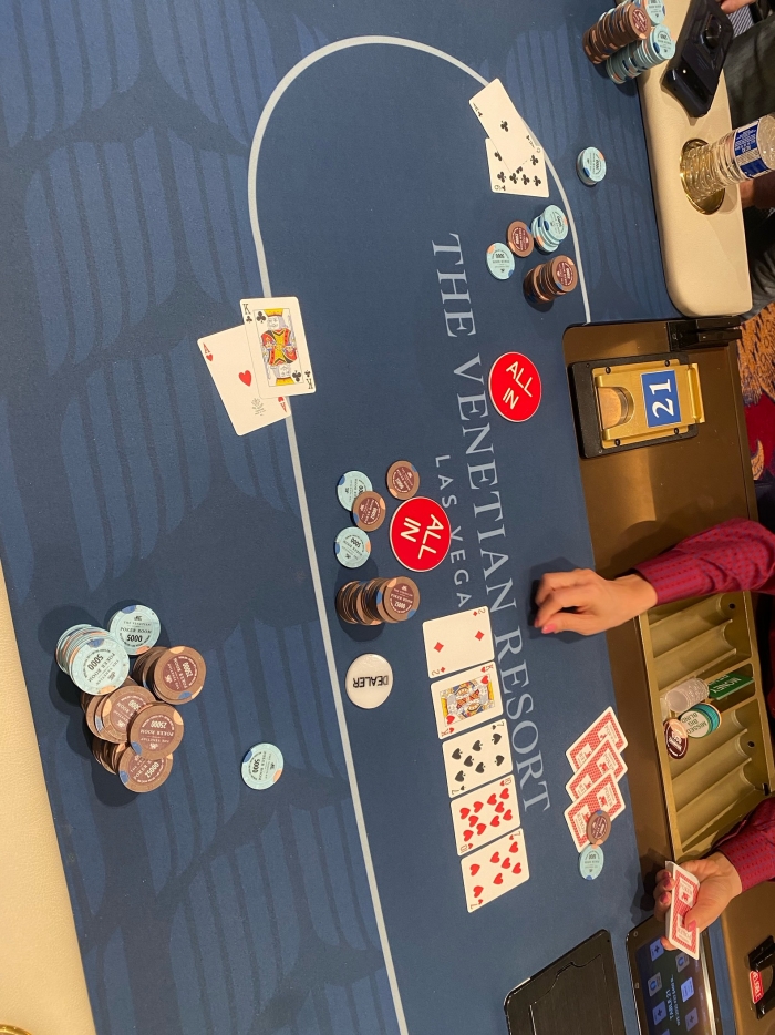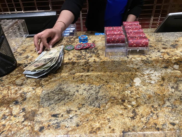 Trods en lang dag på vejen blev turens sidste forlystelse en grind session. Jeg tog mine sidste $400 og fik dem vekslet om til chips. Mit håb var at vinde de $600 tilbage jeg tabte de to første dage. Efter en omgang Butter Chicken i en af casinoets restauranter joinede jeg et NL300 bord.