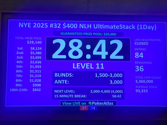 Bundlinjen siger -$23 NZD efter 10,5 times samlet grind. Det svarer til cirka -13 USD. Raken er ikke lav på disse kanter. Deres cap er $16 NZD. Jeg vil tro jeg har betalt cirka $35 NZD per time. Det vil sige $400 NZD. Pokeren var dog ikke prioriteten i løbet af denne uge.