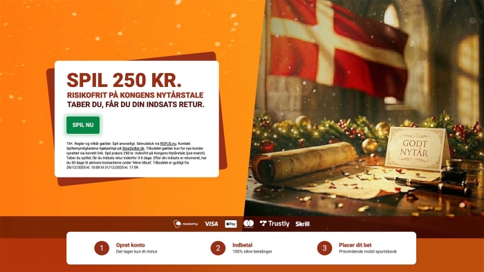 - Vælg "SPORTBOOKTILBUD - Spil 250 kr. risikofrit på Kongens nytårstale"