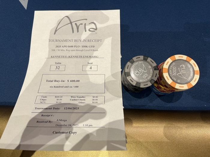 I dag spiller jeg 600$ Plo event i Aria poker open.