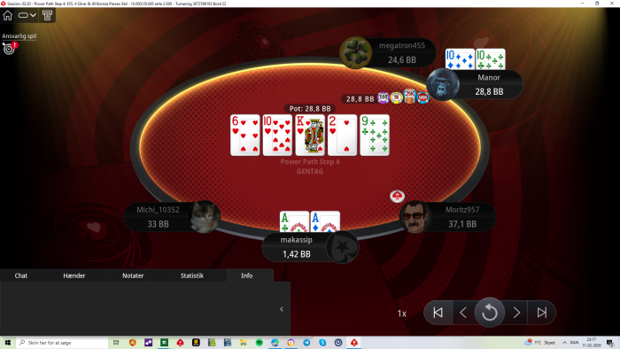 All-in preflop (obv), top 4 vinder silver power path til 1500 bobs - 5. pladsen får en flot bronze-billet itl 109. To hænder senere var jeg done. Og nu er det ude af systemet, fortsat god grind derude :D