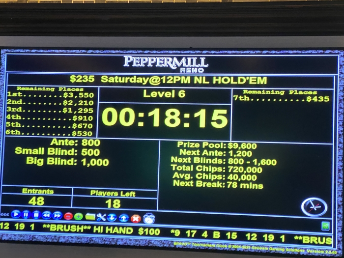 Efter min morgentur bestemte jeg mig for at ryste posen igen med lørdags touren på Peppermill. Start stack: 15K, 30 min levels.