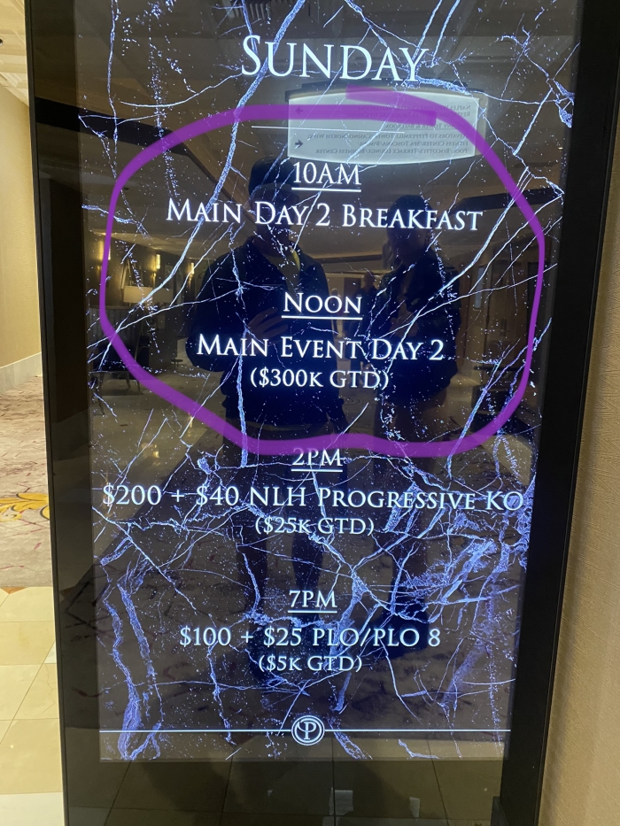 Indtil river K som lige tog mig et par sekunder at finde ud af villian havde. Jeg får et par fist pumps af nogen af de spillere jeg havde siddet med de sidste par timer. Herefter kommer floor ned og giver mig dette skilt.