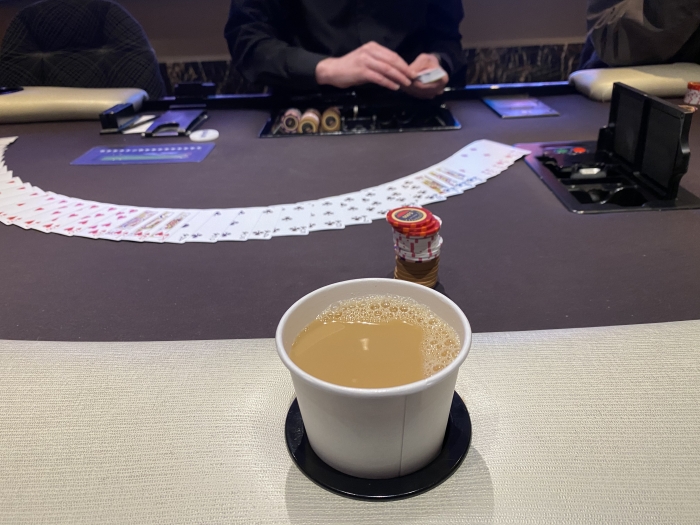 Vi fortsætter selvfølgelig hvor vi slap. Jeg var placeret på table 3. Det var lokaliseret lige mellem cashgame og tour sektionen.