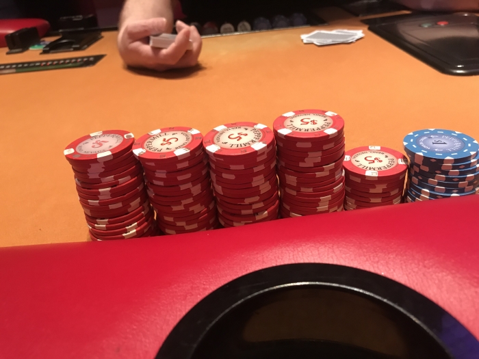 Stadig på guldklumpen. Jeg kan ikke rigtig komme i ordentligt plus. Fik en grim hånd og en god hånd den sidste time.