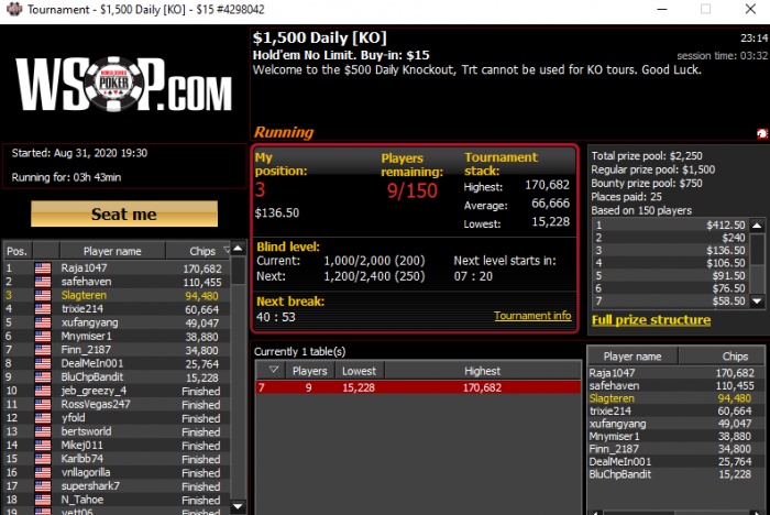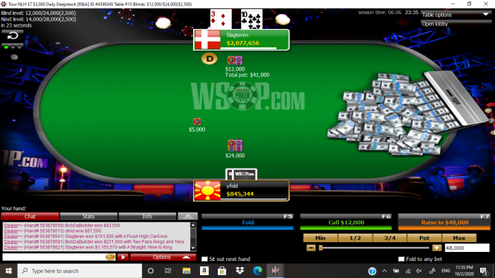 Da jeg efterfølgende siger “Seat open” til dealeren ryster han lige lidt på hovedet igen. Foldede han et overpar der????