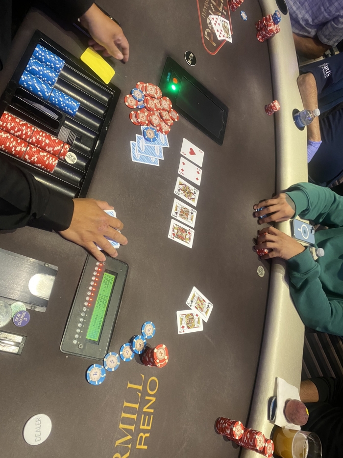 En lidt underligt session hvor jeg blev flænset med mine 3 premiums. Til gengæld gik det bedre med de medicore spilbare hænder. Jeg har en enkelt Reno session tilbage inden min weekend tur østpå. Tirsdag aften skal jeg se game 1 mellem Golden State Warriors og Lakers. Jeg gik selvfølgelig forbi sportsbooken på vej ud.