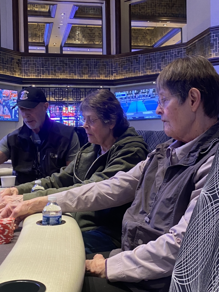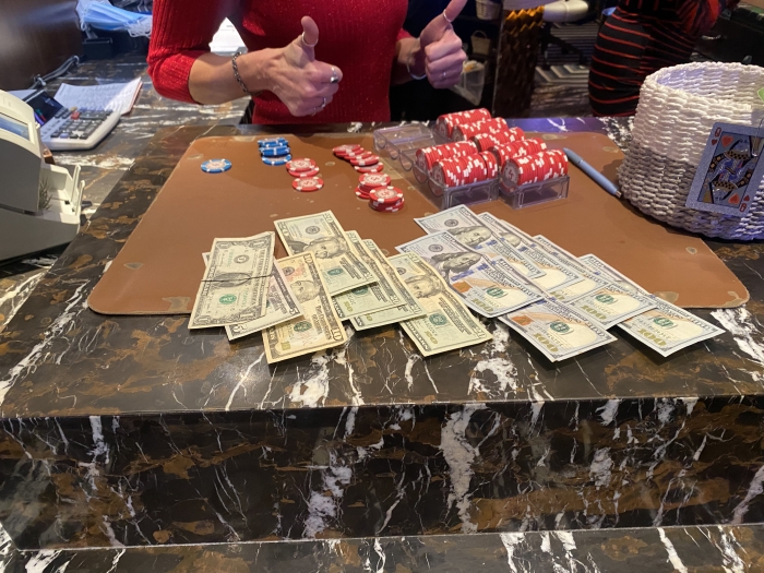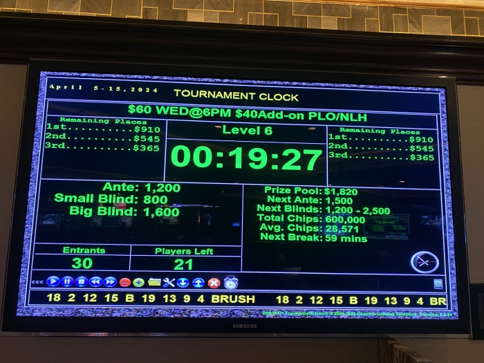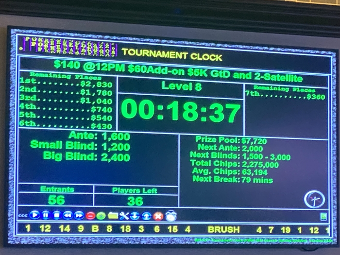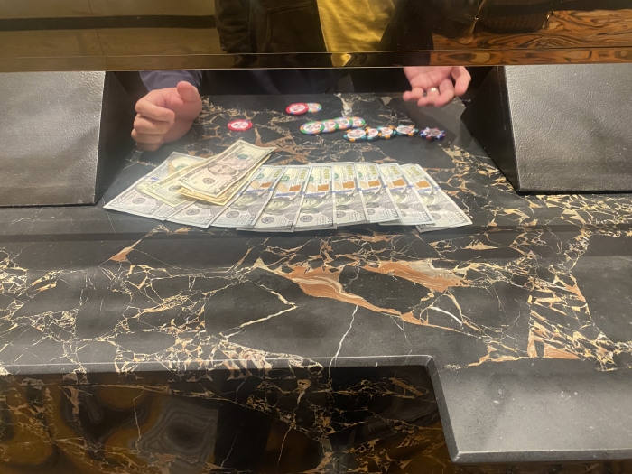Jeg indstiller mig lidt på at booke et +$1K win. Specielt efter fisken får sin stack op i $500. Jeg åbner med AK 2 gange, KQ suited, KJ suited plus et par andre gode hænder. Jeg misser miserablet hver gang. Jeg vinder dog det meste af mit tabte tilbage til sidst med 99 mod fiskens any two. Han sidder til sidst med $8 tilbage og er gået i total nit-mode. Jeg forlader selskabet og booker endnu et tiltrængt win efter en hård Vegas uge.