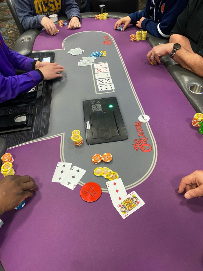 Turn: 2♣. Lækkert kort da vi nu chopper. Han better igen $20. Jeg caller. Pot: $114