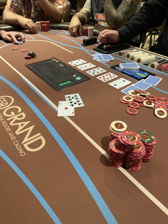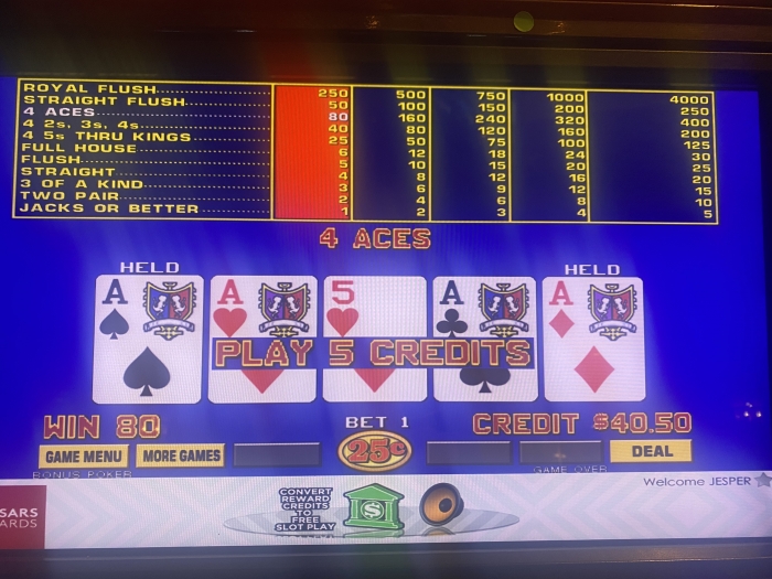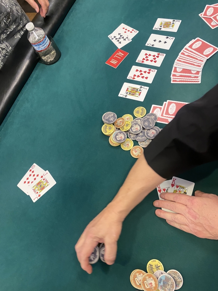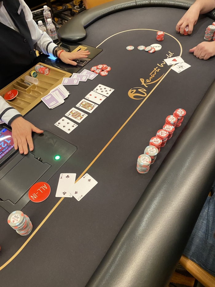 Jeg viser. Han siger “Nice hand” og viser pocket Jacks.