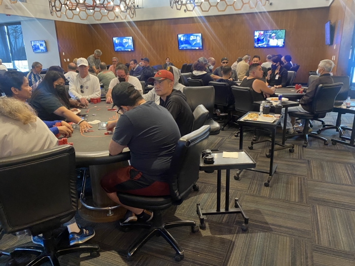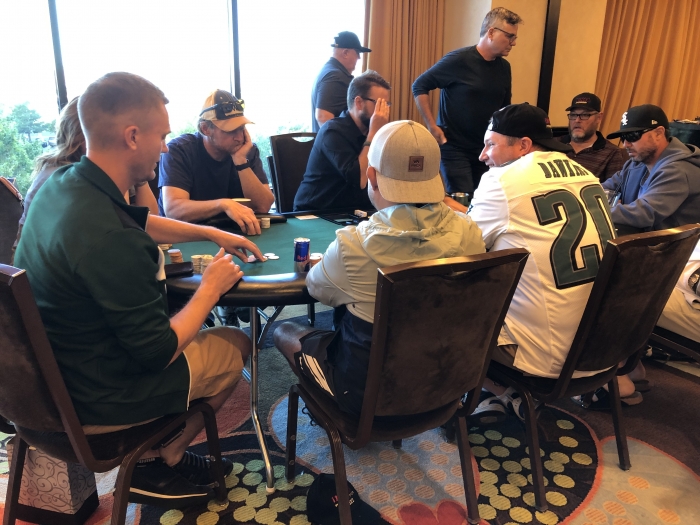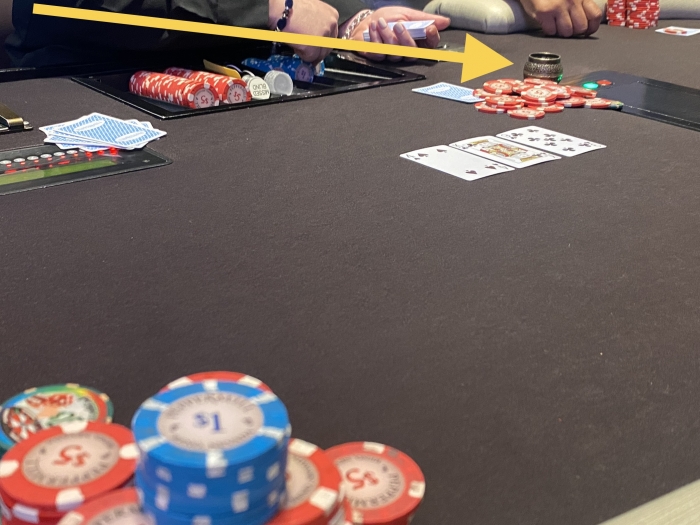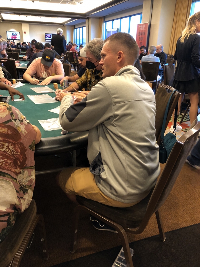 Jeg får lidt senere at vide at da han forlod bordet var han $2K nede. Det er alligevel imponerende i en morgen OMC session at tabe 10 buy ins på få timer.