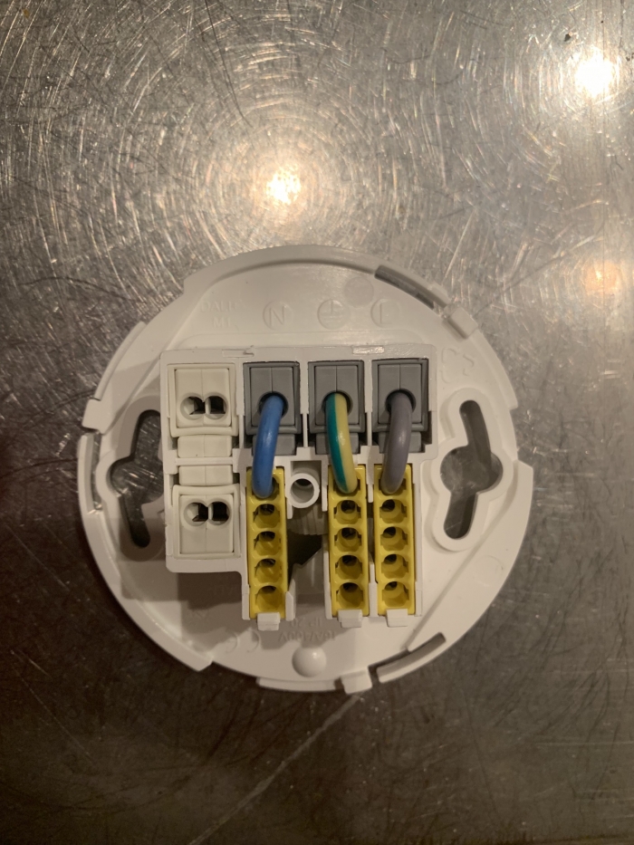 Min tvivl opstår fordi der står at lampen skal tilsluttes N og M1 (se 2. billede) og min tanke var egentlig at tilslutte kablet fra stikkontakten i L N og jord (se 1.billede) og så sløjfe dem videre til næste lampeudtag. Kan jeg det ? og skal lampen så tilsluttes L og N på billede 2?