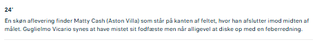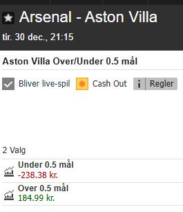 Videre på Aston Villa over 0,5 mål.