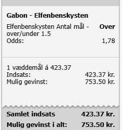 Videre på Elfenbenskysten over 1,5 mål...........De er videre inden, men formoder de vil gå efter 1.ste pladsen som kan kræve en flermålssejr, alt efter hvordan det går i Cameroun-kampen
