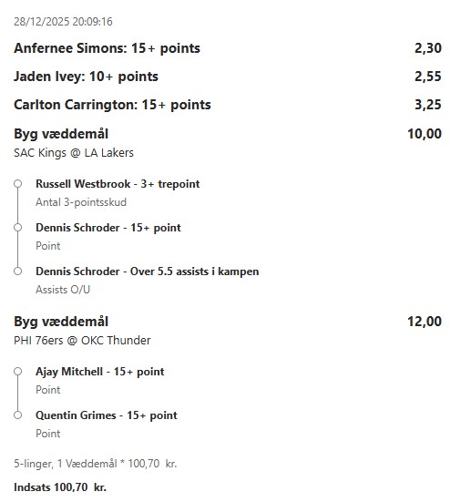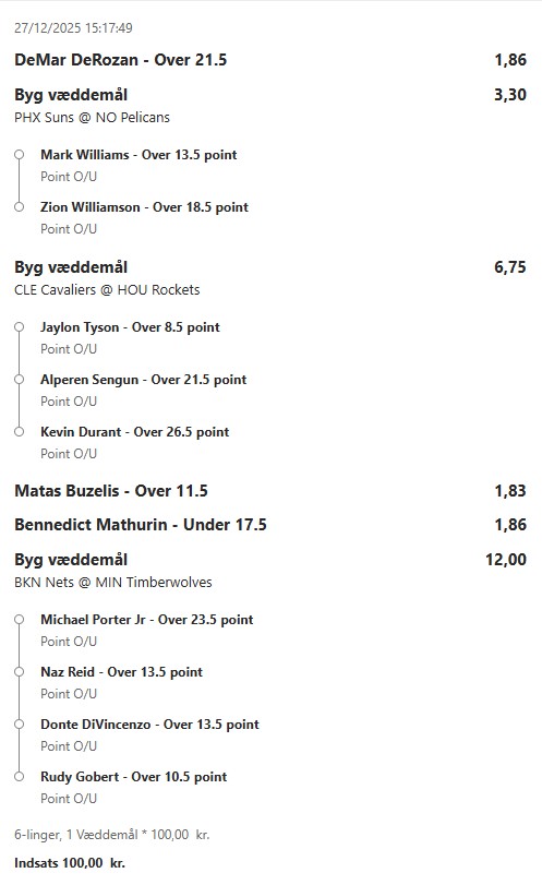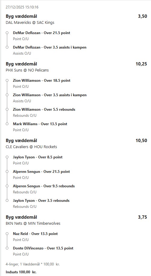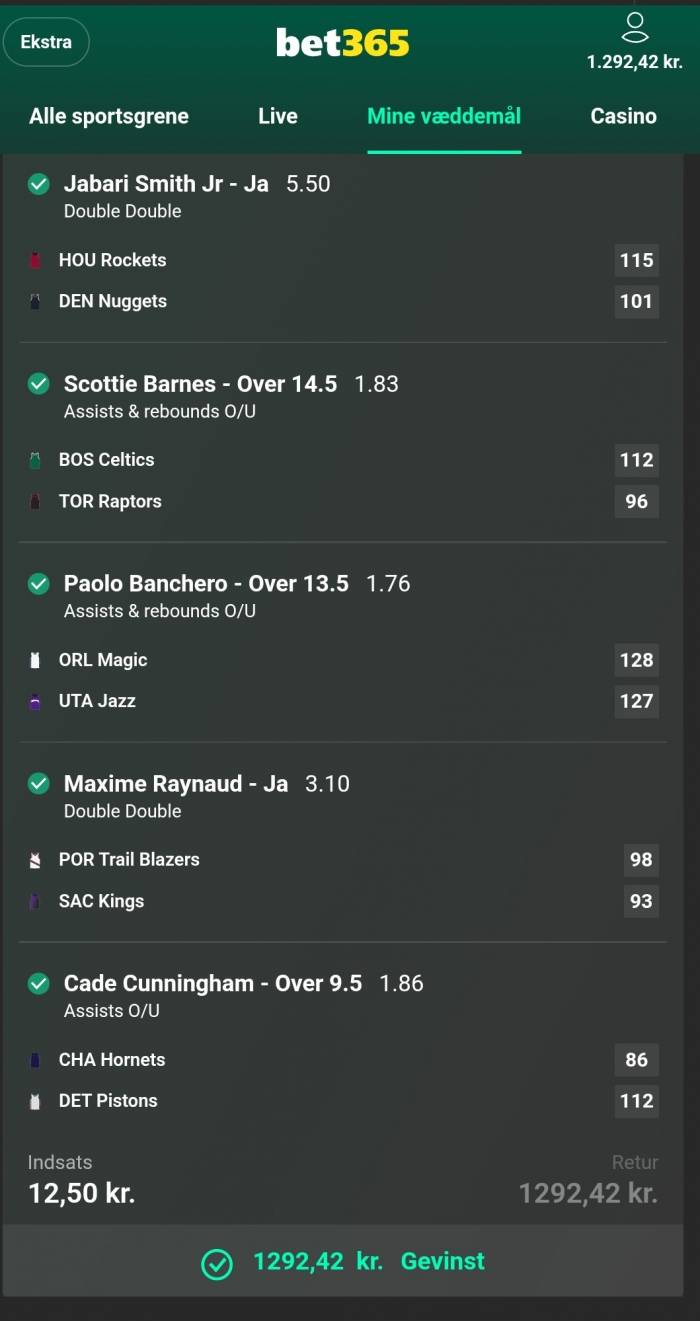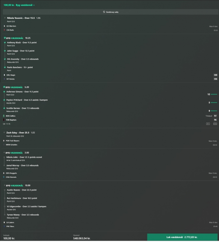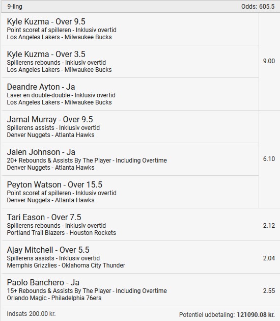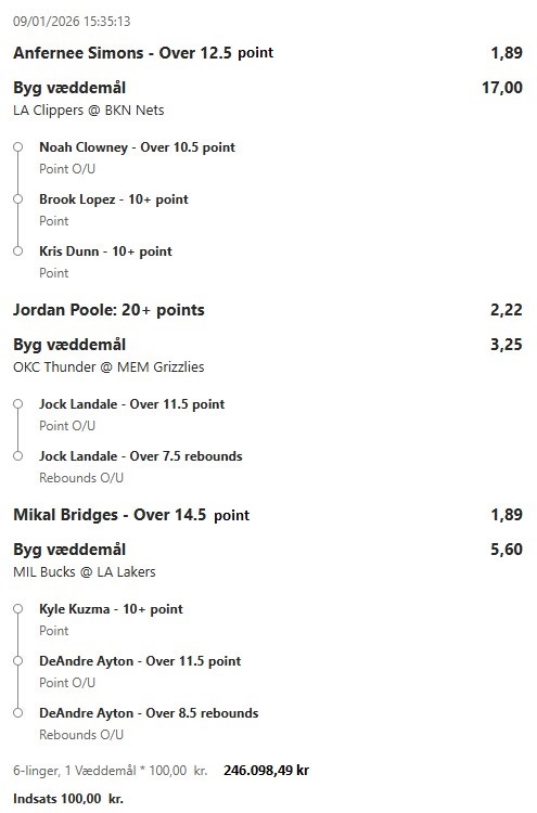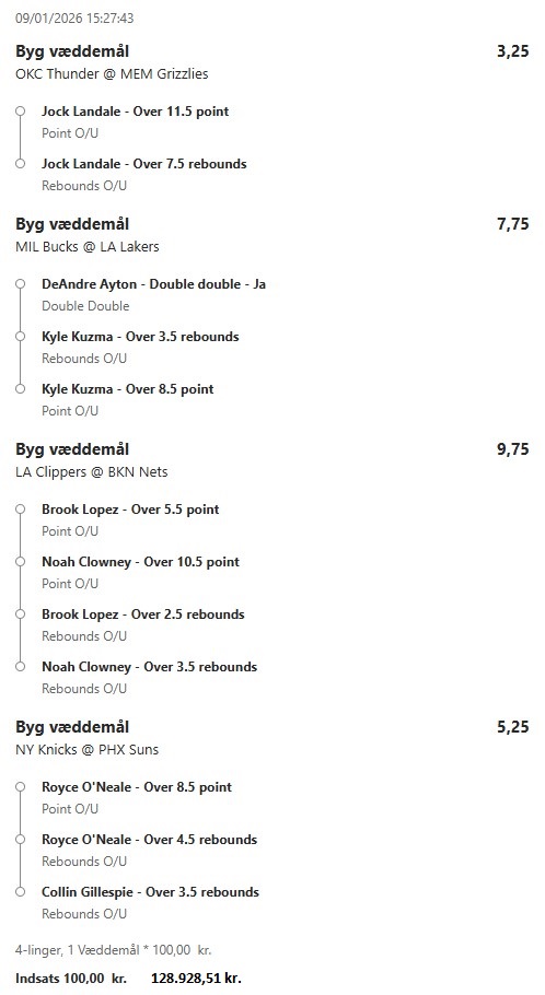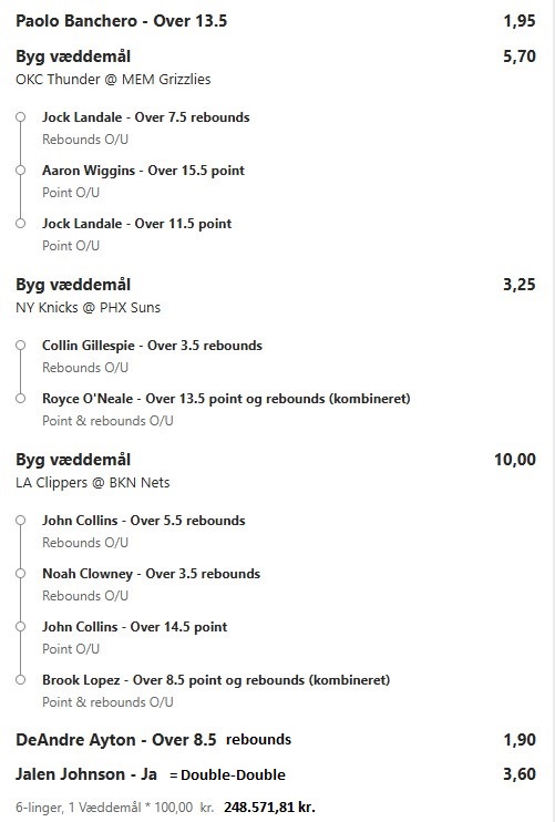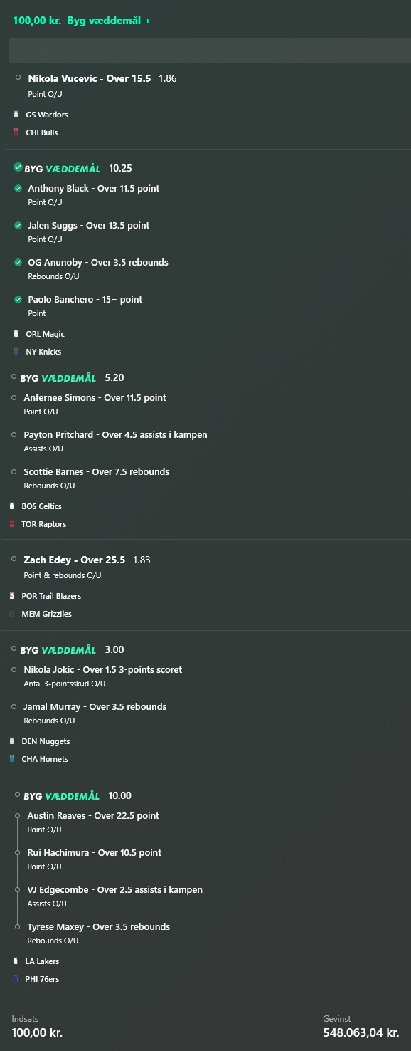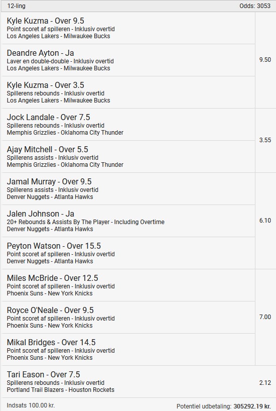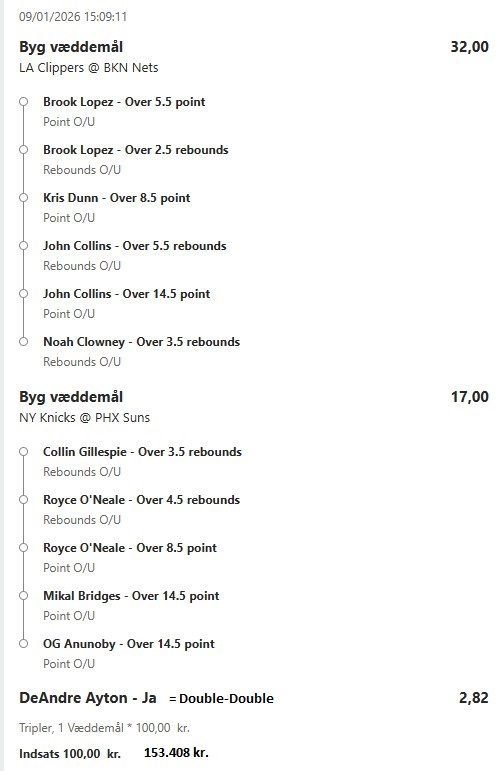 Stort NBA program i nat, jeg prøver lykken igen efter en rigtig god uge! ![]() ![]() ![]() ![]() ![]() ![]() ![]() ![]()