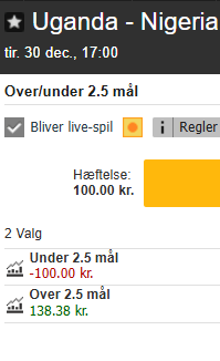 Danske Spil har desværre ikke over 1,5 skud på mål - men hos Betano kan dette spil fåes til 3.75, hvis man kunne lade sig friste af sådan en lille lækkerhaps.