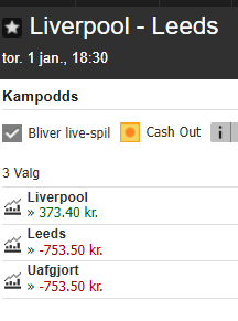 Bare mig, der var blevet forvænt med odds 5-6 på ham, og i sidste kamp var han nede i odds 2,5 - 3, og der tænkte jeg, der ikke var mere at hente på ham, men var da inde og lure odds alligevel på ham i dag. Redigeret af Hawkeye d. 12-01-2026 20:52