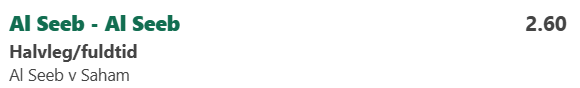 Al Seeb - Saham Vundet (+8 units) HT / FT ... Al Seeb / Al Seeb @ odds 2.6 5 / 5 Bet365 Fodbold - 02/01-2026 16:50