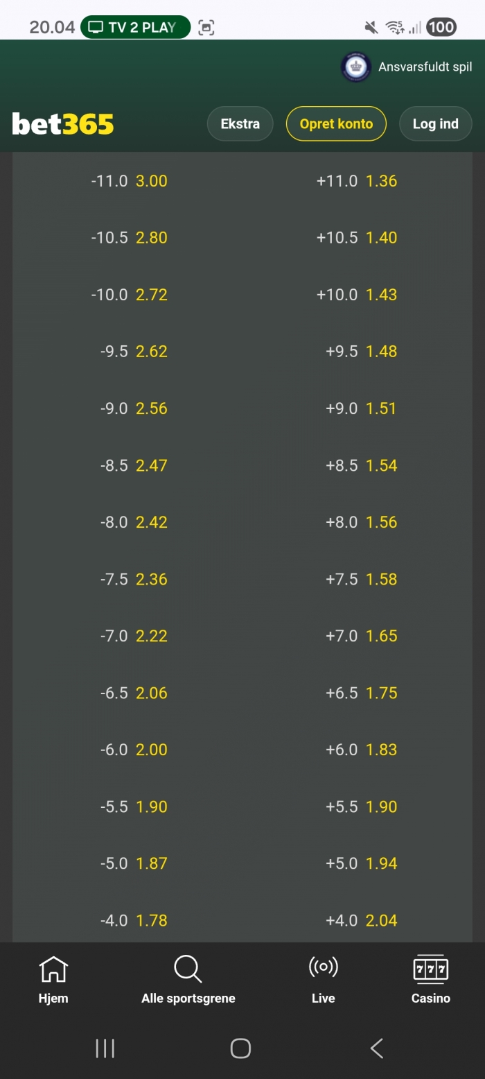 Det er korrekt, at Bet365 i en periode havde point spread sat til +5.5 for Patriots, før det endte (igen) omkring −4.5 som consensus-linjen. Vil du fastholde 5,5 som spread?