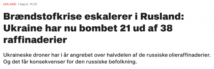 Så har vi at Ukraine nu har taget 40% af Ruslands Produktion af Brændstof ud af spillet.